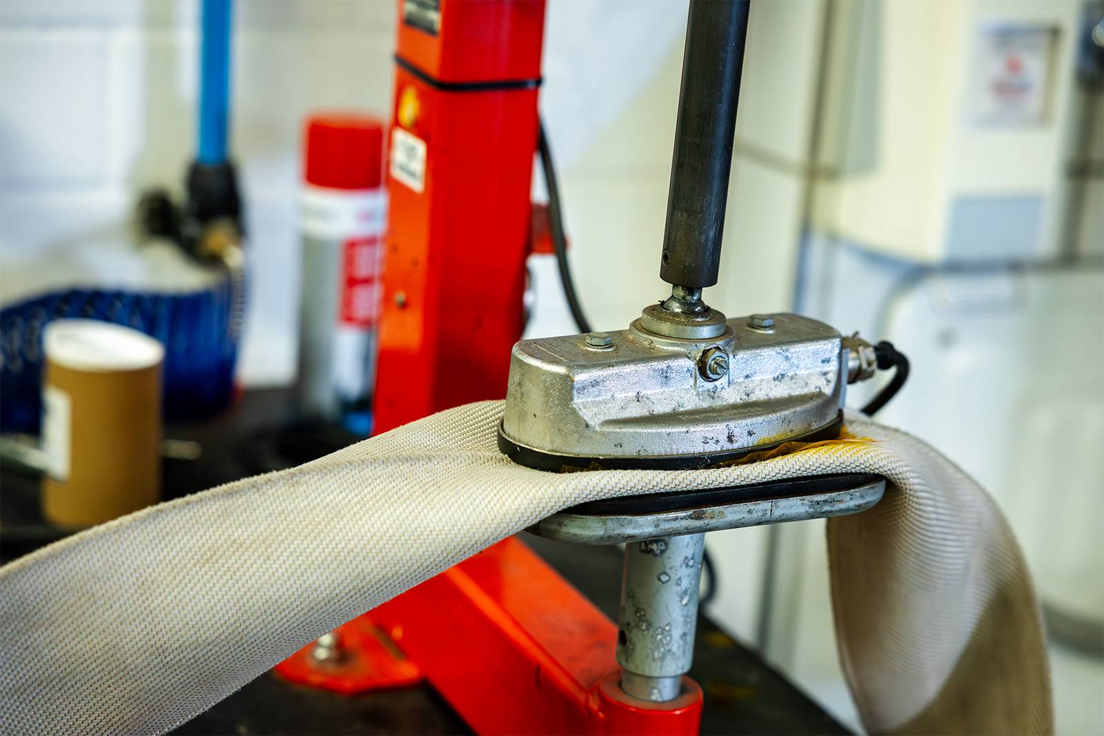 In unserem Gerätehaus ist eine Schlauchwerkstatt integriert. Diese wird vorwiegend von den Gerätewarten für Instandhaltung von Schläuchen und Armaturen für die Wasserentnahme, Wasserförderung und die Wasserabgabe genutzt.